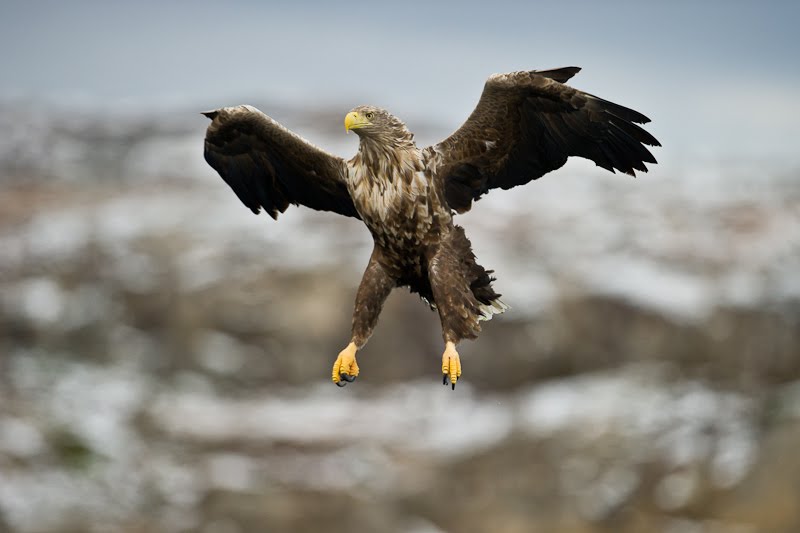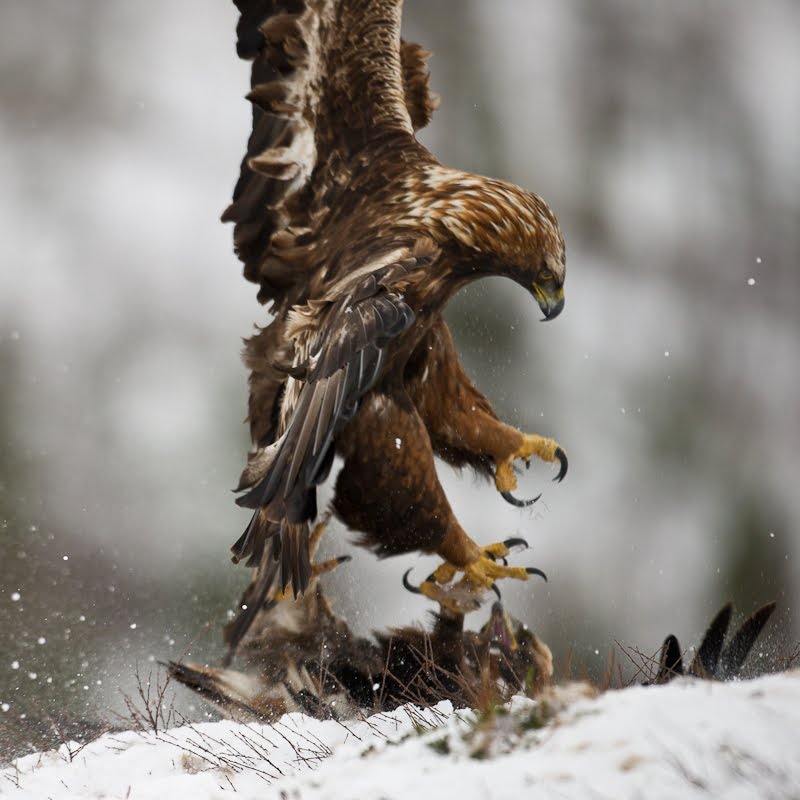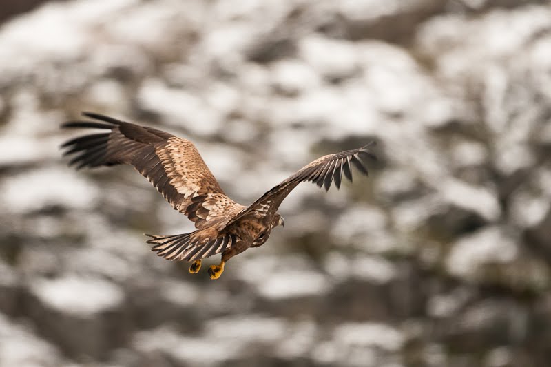 ”Kom i november, for da er det masse aktivitet på åteplassen for kongeørnene”, sa Ole Martin. Og slik ble det. Planen var egentlig 2 dager i skjulet for kongeørn, men siden båten til Ole M. fortsatt var på sjøen, ble det til at vi tok den første dagen på sjøen. Det var kommet snø, og Ole M. mente det kunne bli flotte bilder av havørndykk med snø i bakgrunnen. Dette slo virkelig til. Jeg tok masse actionbilder av havørna, men noen landskapsbilder av ørn ble det også. Særlig ett av dykkene satt virkelig bra og gav spesielle bilder. Til sammen hadde vi nærmere 30 dykk denne dagen. Utrolig bra!